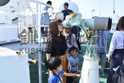 [写真/見学の親子連れなどでにぎわった船内 ]