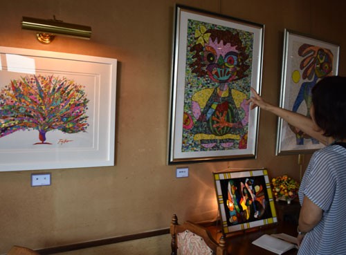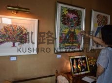 [写真/カラフルな夢想画が並ぶ店内(喫茶「珈路詩」) ]
