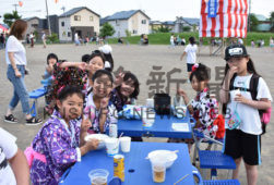 [写真/㊤会場に集まった浴衣姿の子供たち(文苑1丁目町内会)、㊦子供たちが作ったあんどんが会場を彩った盆踊り大会(芦野5丁目のぞみ町内会) ]