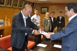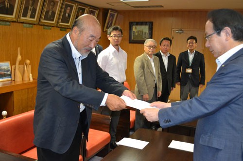[写真/要望書を手渡す神田会長(左) ]