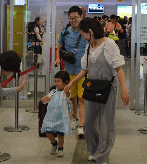 [写真/迎えの家族を見つけ笑顔の帰省客 ]