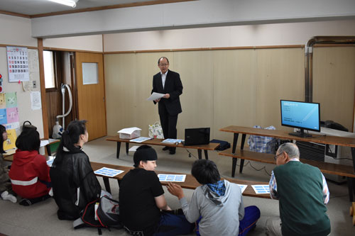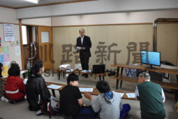 [写真/鳥取てらこやに通う子供たちなどに地域の歴史を語る一本嶋校長 ]
