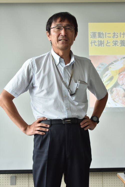 [写真/スポーツにおける代謝と栄養の取り方について指導する杉山教授 ]