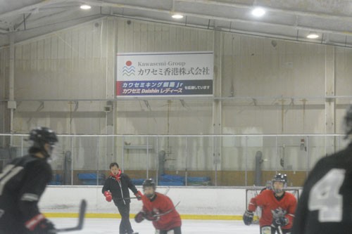 [写真/「カワセミグループ」の看板を練習施設の大進スケートセンターに設置 ]