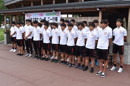 [写真/3回目の来釧となった日本大学サッカー部(歓迎セレモニーで) ]