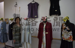 [写真/着物などの生地を使ったリフォーム洋服が並ぶ会場(シルバーシティときわ台ヒルズ) ]