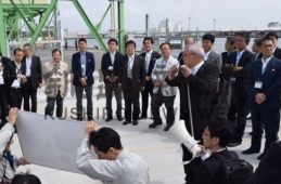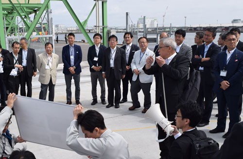 [写真/国際物流ターミナルの説明を受ける視察団 ]