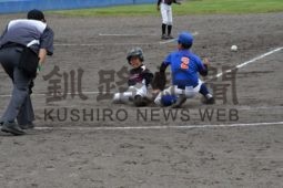 [写真/【決勝、鳥西メジャーズ―M・Aレイカーズ】6回裏、本塁へと滑り込み、逆転へののろしを上げた鳥西の高野(中央) ]