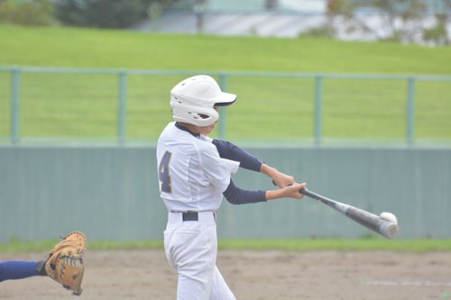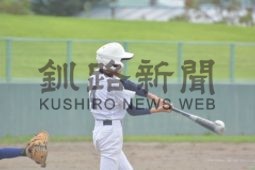 [写真/【準々決勝、釧北・釧共栄・釧美原―釧青陵・釧桜が丘・釧幣舞】4回、直球を強振する釧北・釧共栄・釧美原の木村。 ]