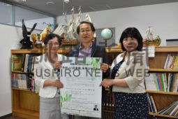 [写真/セミナーの受講を呼び掛ける横山会長(左)ら ]