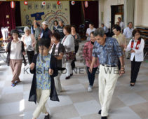 [写真/「十三歩」で軽快なステップを踏む参加者(大楽毛地区老人クラブ連合会) ]