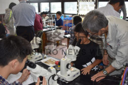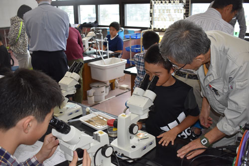 [写真/プランクトンを探す児童 ]