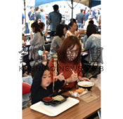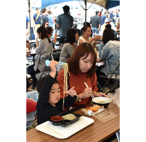 [写真/会場では家族連れらが新そばに舌鼓を打った ]