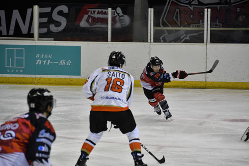 [写真/【ひがし北海道―栃木日光】第2ピリオド2分、狙い澄ましたゴールを決めるFW大津 ]