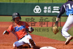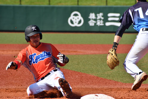 [写真/【決勝、株式会社共立―釧路市役所マリナーズ】5回表、相手の守備の乱れをついて三塁に滑り込む共立の椎名 ]