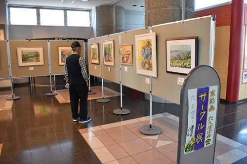 [写真/10号の水彩画作品が並ぶ展示会場 ]