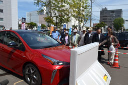 [写真/最新の事故防止技術を乗車体験する参加者ら ]