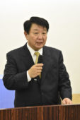 [写真/総会であいさつする阿部会長 ]