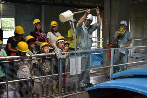 [写真/浄化されてきれいになった水を驚きのまなざしで見つめる参加者 ]