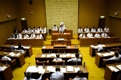 [写真/理事者、議員とも全員が上着を脱いで議論を交わした根室市議会(10日) ]
