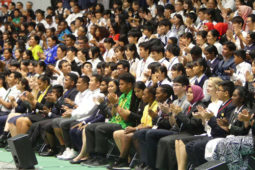 [写真/世界津波の日サミットで世界43カ国の高校生が参集。全員での記念撮影では拍手も起こった ]