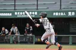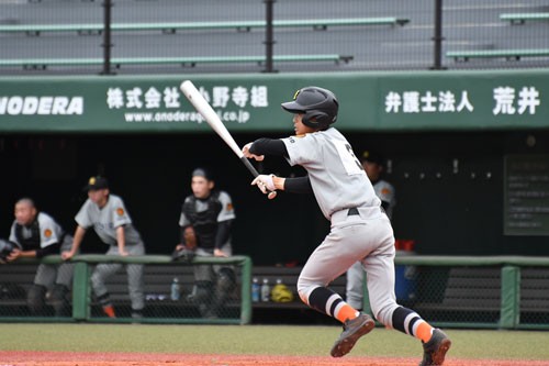 [写真/【Bブロック1回戦、釧工業―中標津】9回、中前打を放った釧工業の村上。打球の行方を見て勝ち越しを確信 ]