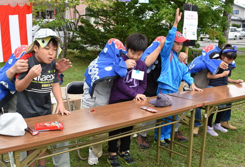 [写真/運営協力会役員と子供たちによるチャレンジゲーム(治水児童館) ]