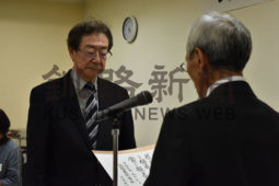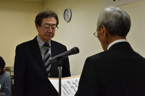 [写真/釧路市長賞を受賞し、深谷会長から賞状を受け取る中井?晟さん ]