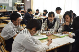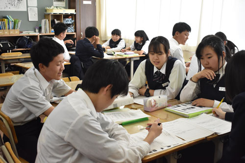 [写真/島本鉄工の強みや課題をグループ間で話し合う生徒 ]