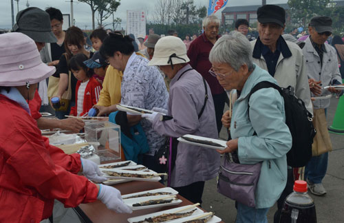 [写真/1000食分のサンマが無料で振る舞われ、多くの市民らが行列をなした ]
