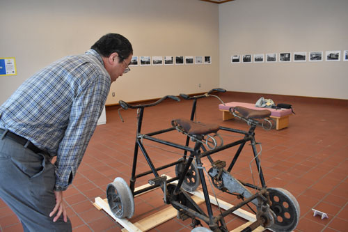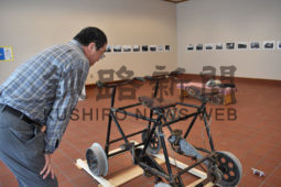[写真/道立釧路芸術館に展示されている軌道自転車 ]