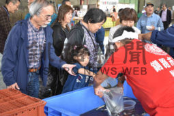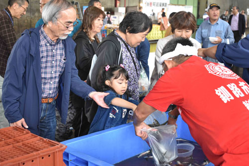 [写真/いわしのすくい取りを楽しむ来場者 ]