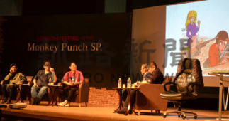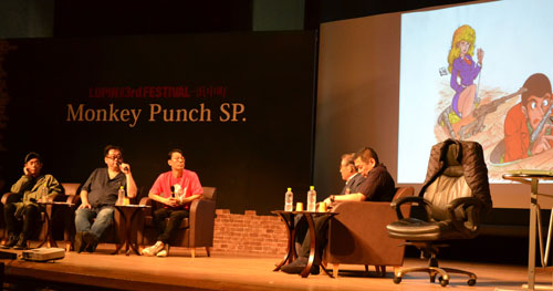 [写真/モンキー・パンチさん愛用の椅子を横に、思いや作品について話す5氏 ]