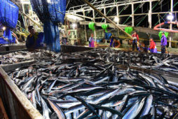 [写真/今季最多の水揚げとなった根室・花咲港(18日午前4時18分) ]