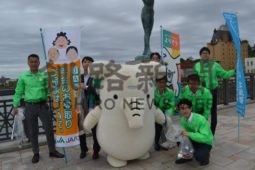 [写真/幣舞橋の清掃活動を行った「よりぞう」と職員ら ]