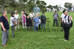 [写真/防災研修会2日目、ポプラ公園に集まった会員ら ]