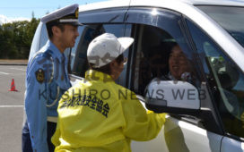事故や飲酒運転防止 旗の波で呼び掛け 厚岸署ら街頭啓発(2019-09-26)