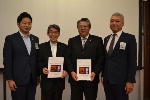[写真/要望書を手渡した山口理事長(右端)、島本委員長(左端)と濱屋副会頭(右から2人目)、蝦名市長(同3人目) ]