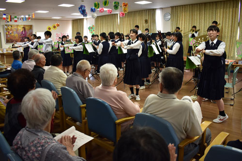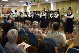 [写真/合唱やダンスなども交えて利用者らを楽しませた北陽高校吹奏楽局 ]