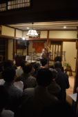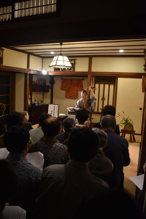 [写真/旧五十嵐家住宅の和室で、保存の会発足の記念に開かれた薩摩琵琶の演奏会 ]