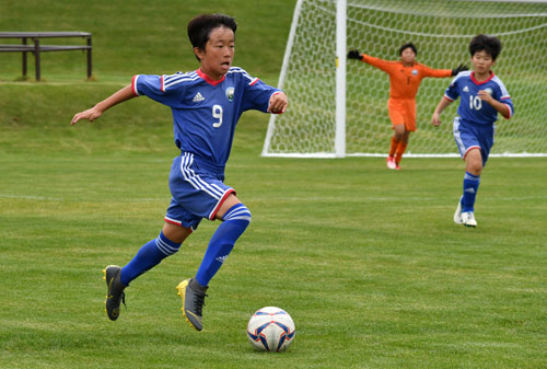 [写真/【決勝、中標津―朝陽SSM】相手攻撃を封じ、反撃に出る中標津のDF菅野李有 ]