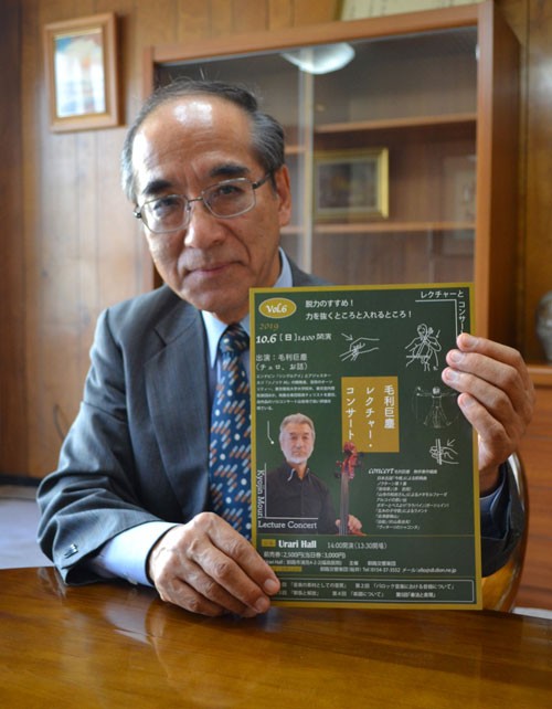 [写真/レクチャー・コンサートをPRする桜井団長 ]