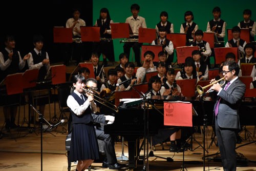 [写真/プロとのアドリブ演奏の掛け合いを披露する生徒 ]
