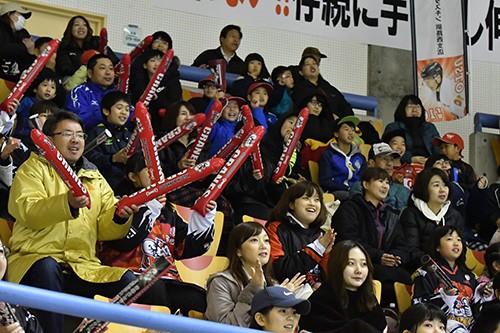 [写真/得点シーンで盛り上がる、ひがし北海道クレインズのファン(9月29日、日本製紙アイスアリーナ) ]