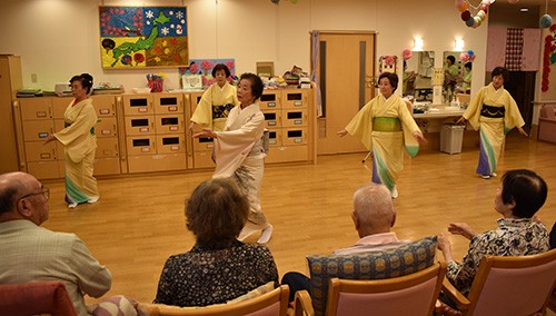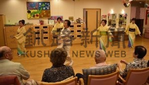 [写真/華麗な舞いを披露した日舞淑美会のメンバー(ニチイケアセンターくしろ) ]