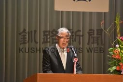 [写真/これまでの町政と今後の発展へ協力を呼び掛ける金澤町長 ]