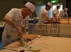 [写真/有段者によるそば打ちの実演 ]
