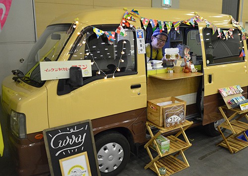 [写真/キッチンカーでストリングカレーを販売するイッケンヤカレーコミン ]