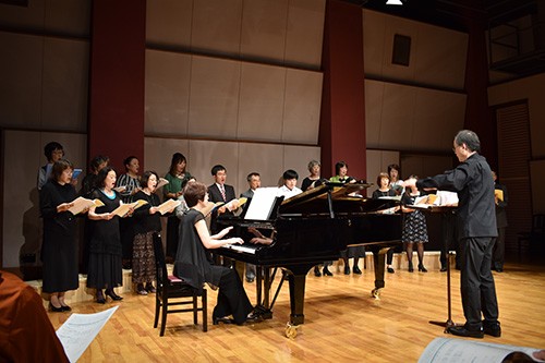 [写真/「日本国憲法」を歌う「音の虹」のメンバー ]