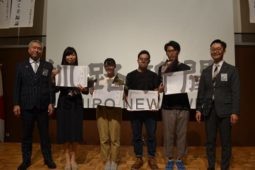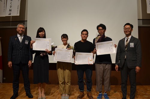 [写真/山口審査委員長(左端)と動画コンテストで最優秀賞を受賞した千田さん(左から2人目)と受賞者ら  ]